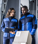 90% polyester/10% elastane. Outer layer made from at least 30% recycled fabric. Polyester stretch marl knit effect fleece fabric. Warm backed Extol stretch knitted fabric. Full length zip with chin guard and inner zip guard. Bound elasticated collar, cuffs and hem. Contrast panels. Two chest zip pockets. Two front zip pockets. Reflective print detail. Cut our label. Access for decoration.