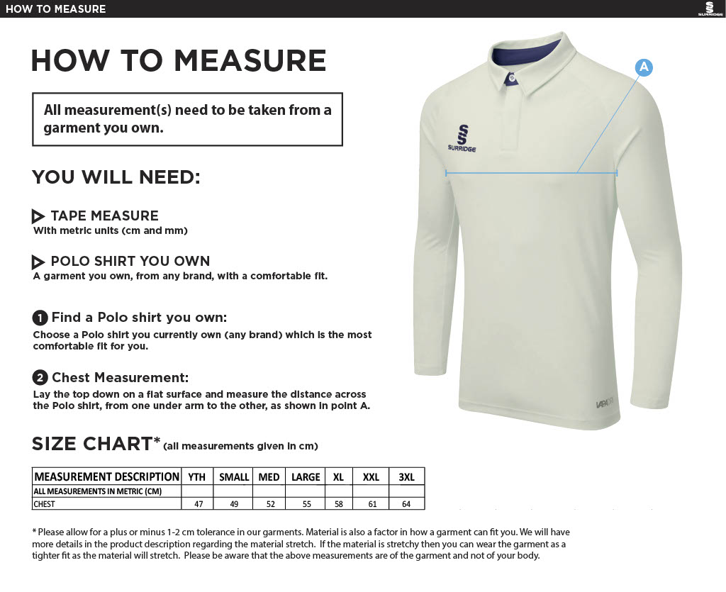 • Embroidered Surridge logo on chest